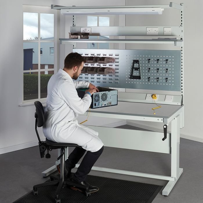 Some ESD workbenches are height adjustable, even automatically adjustable worktables are part of our complete range ESD furniture. Designed and built to high specifications, ESD-Tables-worktables and other ESD furnishings are used in a wide variety of technical and manufacturing environments, including: Industrial, Commercial, Military, Government, and Medical…